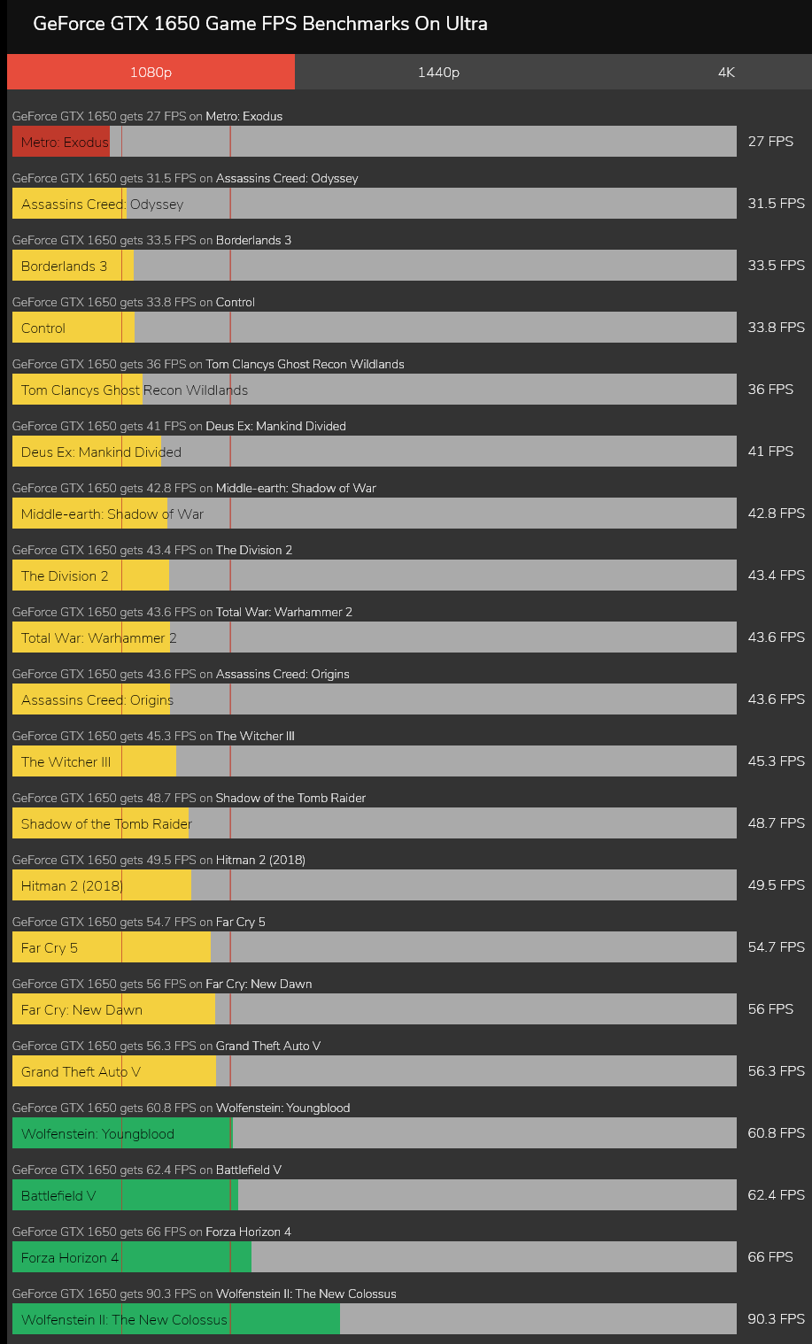 در جدول زیر برخی زا بازی های معروف که به راحتی بر روی کارت گرافیک 1650 قابل اجرا هستند را با FPS در رزولوشن Full HD برای شما آورده ایم.